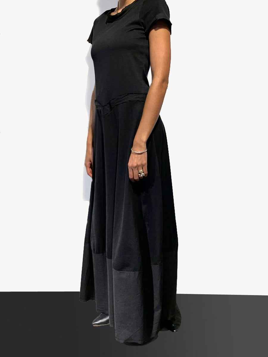 LABO.ART Long Flared Jersey Dress with Cotton Crêpe attachments and unfinished seams